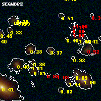 Black segments are analyzed here. Roll mouse over color images to view segments. Best viewed in a wide browser window (1200 pixels or more). Download SED & P(z) plots to view larger versions.