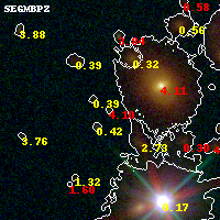 Black segments are analyzed here. Roll mouse over color images to view segments. Best viewed in a wide browser window (1200 pixels or more). Download SED & P(z) plots to view larger versions.