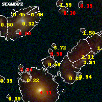 Black segments are analyzed here. Roll mouse over color images to view segments. Best viewed in a wide browser window (1200 pixels or more). Download SED & P(z) plots to view larger versions.