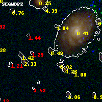 Black segments are analyzed here. Roll mouse over color images to view segments. Best viewed in a wide browser window (1200 pixels or more). Download SED & P(z) plots to view larger versions.