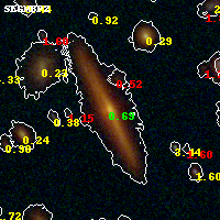 Black segments are analyzed here. Roll mouse over color images to view segments. Best viewed in a wide browser window (1200 pixels or more). Download SED & P(z) plots to view larger versions.
