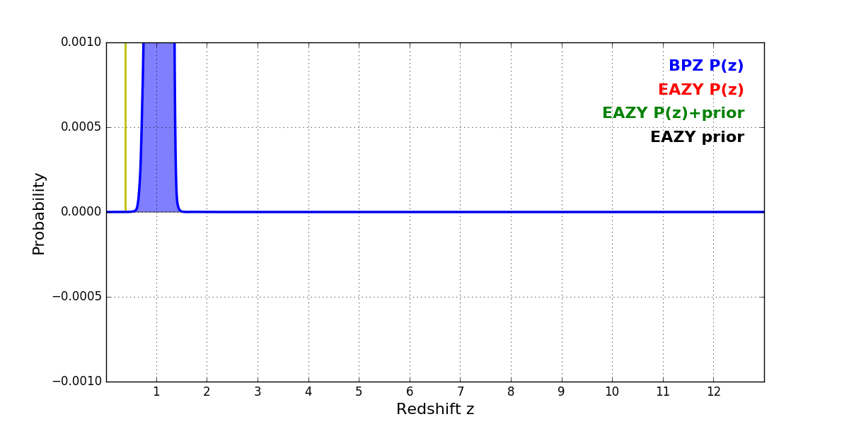 In P(z) plots: Yellow lines mark the cluster redshift z = 0.390,