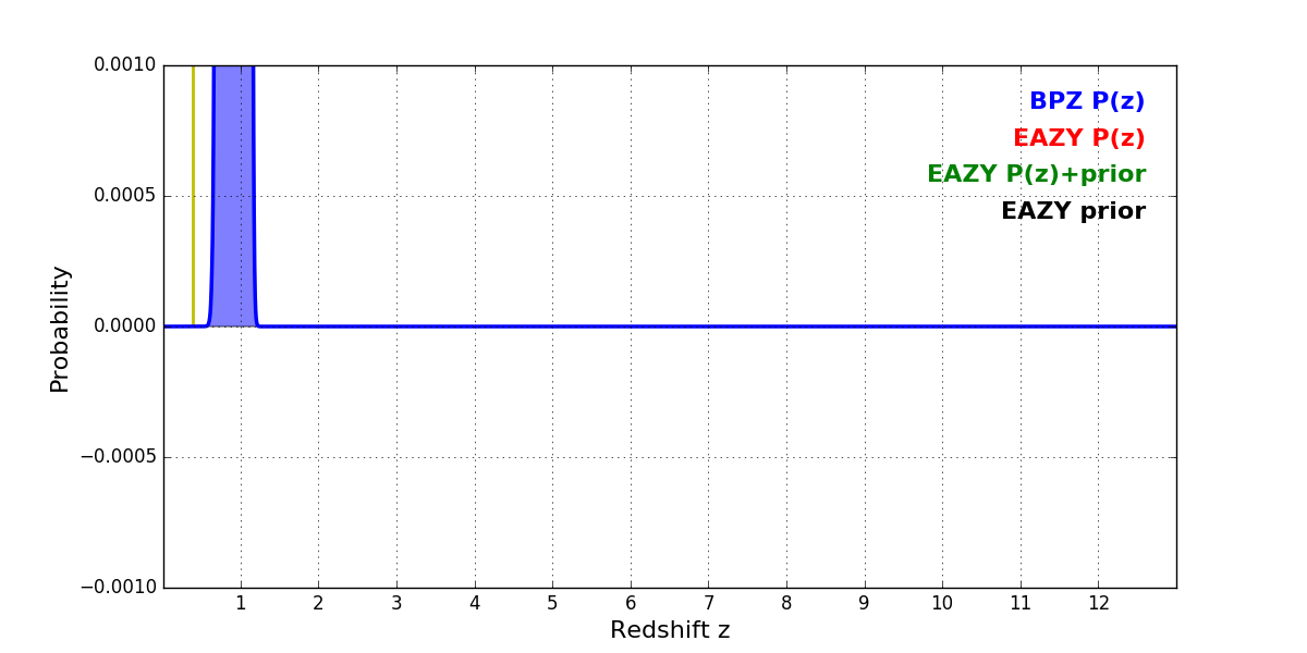 In P(z) plots: Yellow lines mark the cluster redshift z = 0.390,