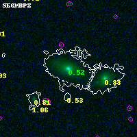 Black segments are analyzed here. Roll mouse over color images to view segments. Best viewed in a wide browser window (1200 pixels or more). Download SED & P(z) plots to view larger versions.