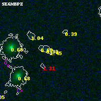 Black segments are analyzed here. Roll mouse over color images to view segments. Best viewed in a wide browser window (1200 pixels or more). Download SED & P(z) plots to view larger versions.