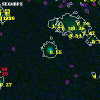 Black segments are analyzed here. Roll mouse over color images to view segments. Best viewed in a wide browser window (1200 pixels or more). Download SED & P(z) plots to view larger versions.
