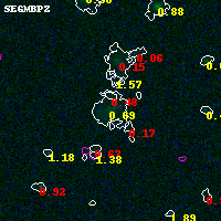 Black segments are analyzed here. Roll mouse over color images to view segments. Best viewed in a wide browser window (1200 pixels or more). Download SED & P(z) plots to view larger versions.