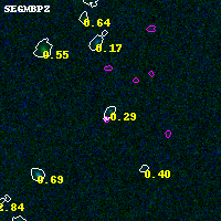 Black segments are analyzed here. Roll mouse over color images to view segments. Best viewed in a wide browser window (1200 pixels or more). Download SED & P(z) plots to view larger versions.
