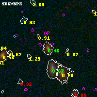 Black segments are analyzed here. Roll mouse over color images to view segments. Best viewed in a wide browser window (1200 pixels or more). Download SED & P(z) plots to view larger versions.