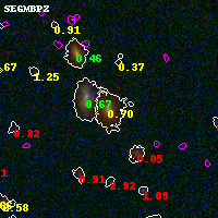 Black segments are analyzed here. Roll mouse over color images to view segments. Best viewed in a wide browser window (1200 pixels or more). Download SED & P(z) plots to view larger versions.