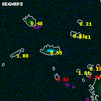 Black segments are analyzed here. Roll mouse over color images to view segments. Best viewed in a wide browser window (1200 pixels or more). Download SED & P(z) plots to view larger versions.