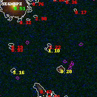 Black segments are analyzed here. Roll mouse over color images to view segments. Best viewed in a wide browser window (1200 pixels or more). Download SED & P(z) plots to view larger versions.
