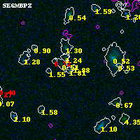 Black segments are analyzed here. Roll mouse over color images to view segments. Best viewed in a wide browser window (1200 pixels or more). Download SED & P(z) plots to view larger versions.