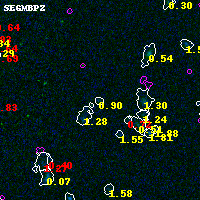 Black segments are analyzed here. Roll mouse over color images to view segments. Best viewed in a wide browser window (1200 pixels or more). Download SED & P(z) plots to view larger versions.