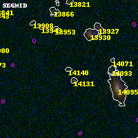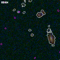 Black segments are analyzed here. Roll mouse over color images to view segments. Best viewed in a wide browser window (1200 pixels or more). Download SED & P(z) plots to view larger versions.