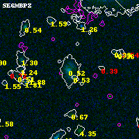 Black segments are analyzed here. Roll mouse over color images to view segments. Best viewed in a wide browser window (1200 pixels or more). Download SED & P(z) plots to view larger versions.