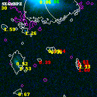 Black segments are analyzed here. Roll mouse over color images to view segments. Best viewed in a wide browser window (1200 pixels or more). Download SED & P(z) plots to view larger versions.