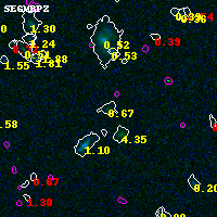 Black segments are analyzed here. Roll mouse over color images to view segments. Best viewed in a wide browser window (1200 pixels or more). Download SED & P(z) plots to view larger versions.