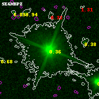 Black segments are analyzed here. Roll mouse over color images to view segments. Best viewed in a wide browser window (1200 pixels or more). Download SED & P(z) plots to view larger versions.