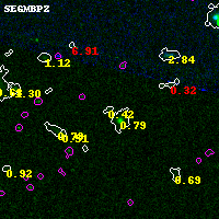 Black segments are analyzed here. Roll mouse over color images to view segments. Best viewed in a wide browser window (1200 pixels or more). Download SED & P(z) plots to view larger versions.