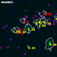 Black segments are analyzed here. Roll mouse over color images to view segments. Best viewed in a wide browser window (1200 pixels or more). Download SED & P(z) plots to view larger versions.