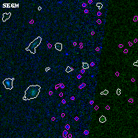 Black segments are analyzed here. Roll mouse over color images to view segments. Best viewed in a wide browser window (1200 pixels or more). Download SED & P(z) plots to view larger versions.
