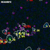 Black segments are analyzed here. Roll mouse over color images to view segments. Best viewed in a wide browser window (1200 pixels or more). Download SED & P(z) plots to view larger versions.