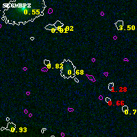 Black segments are analyzed here. Roll mouse over color images to view segments. Best viewed in a wide browser window (1200 pixels or more). Download SED & P(z) plots to view larger versions.