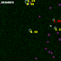 Black segments are analyzed here. Roll mouse over color images to view segments. Best viewed in a wide browser window (1200 pixels or more). Download SED & P(z) plots to view larger versions.