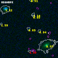 Black segments are analyzed here. Roll mouse over color images to view segments. Best viewed in a wide browser window (1200 pixels or more). Download SED & P(z) plots to view larger versions.