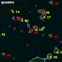Black segments are analyzed here. Roll mouse over color images to view segments. Best viewed in a wide browser window (1200 pixels or more). Download SED & P(z) plots to view larger versions.