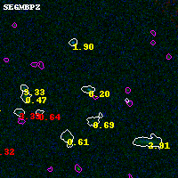 Black segments are analyzed here. Roll mouse over color images to view segments. Best viewed in a wide browser window (1200 pixels or more). Download SED & P(z) plots to view larger versions.