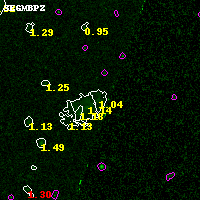 Black segments are analyzed here. Roll mouse over color images to view segments. Best viewed in a wide browser window (1200 pixels or more). Download SED & P(z) plots to view larger versions.