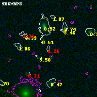 Black segments are analyzed here. Roll mouse over color images to view segments. Best viewed in a wide browser window (1200 pixels or more). Download SED & P(z) plots to view larger versions.