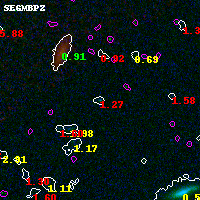 Black segments are analyzed here. Roll mouse over color images to view segments. Best viewed in a wide browser window (1200 pixels or more). Download SED & P(z) plots to view larger versions.