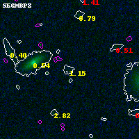 Black segments are analyzed here. Roll mouse over color images to view segments. Best viewed in a wide browser window (1200 pixels or more). Download SED & P(z) plots to view larger versions.