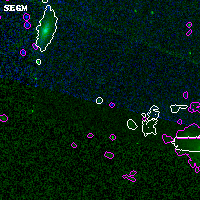 Black segments are analyzed here. Roll mouse over color images to view segments. Best viewed in a wide browser window (1200 pixels or more). Download SED & P(z) plots to view larger versions.