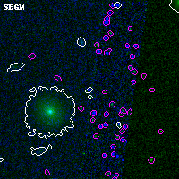 Black segments are analyzed here. Roll mouse over color images to view segments. Best viewed in a wide browser window (1200 pixels or more). Download SED & P(z) plots to view larger versions.