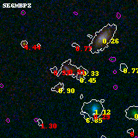 Black segments are analyzed here. Roll mouse over color images to view segments. Best viewed in a wide browser window (1200 pixels or more). Download SED & P(z) plots to view larger versions.