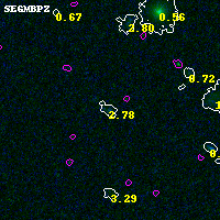 Black segments are analyzed here. Roll mouse over color images to view segments. Best viewed in a wide browser window (1200 pixels or more). Download SED & P(z) plots to view larger versions.
