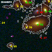 Black segments are analyzed here. Roll mouse over color images to view segments. Best viewed in a wide browser window (1200 pixels or more). Download SED & P(z) plots to view larger versions.