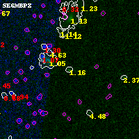 Black segments are analyzed here. Roll mouse over color images to view segments. Best viewed in a wide browser window (1200 pixels or more). Download SED & P(z) plots to view larger versions.