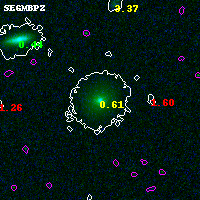 Black segments are analyzed here. Roll mouse over color images to view segments. Best viewed in a wide browser window (1200 pixels or more). Download SED & P(z) plots to view larger versions.