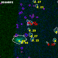 Black segments are analyzed here. Roll mouse over color images to view segments. Best viewed in a wide browser window (1200 pixels or more). Download SED & P(z) plots to view larger versions.