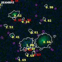 Black segments are analyzed here. Roll mouse over color images to view segments. Best viewed in a wide browser window (1200 pixels or more). Download SED & P(z) plots to view larger versions.