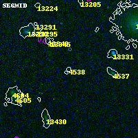 Black segments are analyzed here. Roll mouse over color images to view segments. Best viewed in a wide browser window (1200 pixels or more). Download SED & P(z) plots to view larger versions.