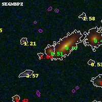 Black segments are analyzed here. Roll mouse over color images to view segments. Best viewed in a wide browser window (1200 pixels or more). Download SED & P(z) plots to view larger versions.
