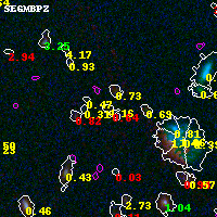 Black segments are analyzed here. Roll mouse over color images to view segments. Best viewed in a wide browser window (1200 pixels or more). Download SED & P(z) plots to view larger versions.