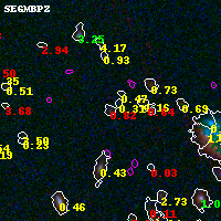 Black segments are analyzed here. Roll mouse over color images to view segments. Best viewed in a wide browser window (1200 pixels or more). Download SED & P(z) plots to view larger versions.