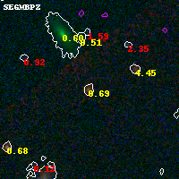 Black segments are analyzed here. Roll mouse over color images to view segments. Best viewed in a wide browser window (1200 pixels or more). Download SED & P(z) plots to view larger versions.